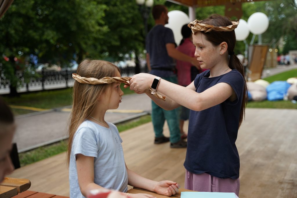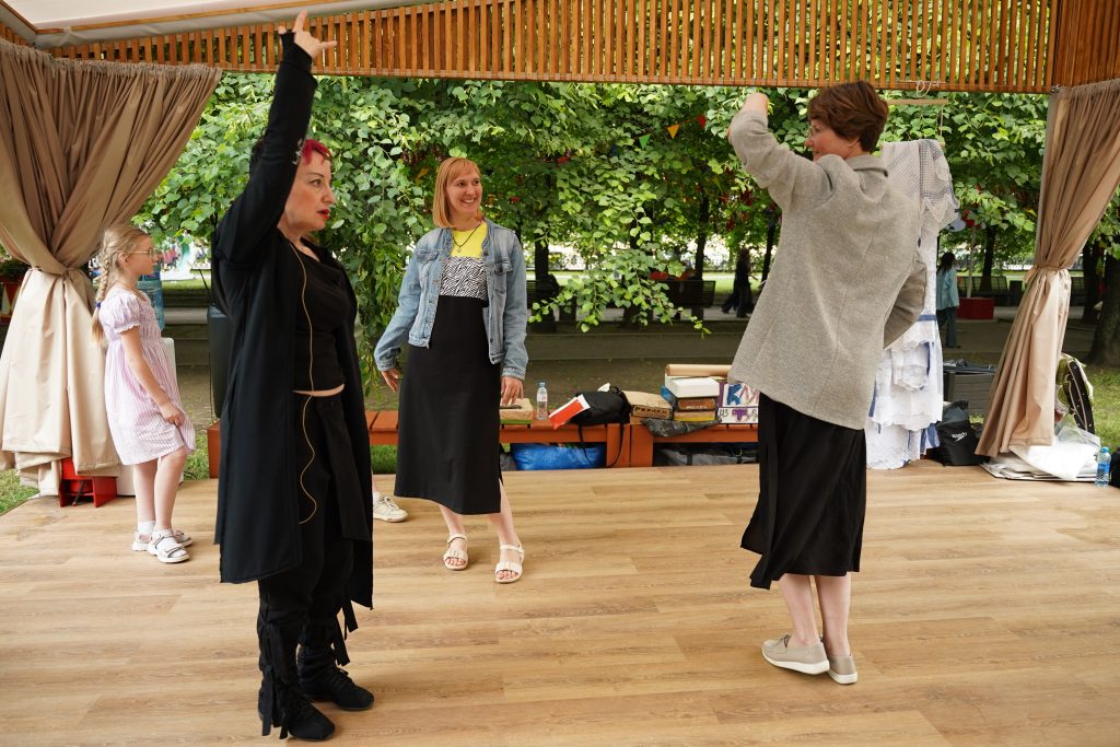 Под руководством Инны Ваксенбург, режиссера, хореографа, театрального педагога гости создали пластический спектакль по древнегреческим комедиям Аристофана. Им предстояло придумать персонажей, опробовать сценические движения, собрать настоящий древнегреческий хор, сделать венки из плюща, а затем представить спектакль.